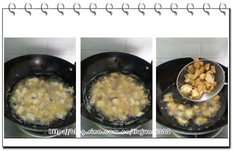 3.炸丁时最后转大火稍炸一会儿可将鱼丁内多余的油份逼出;