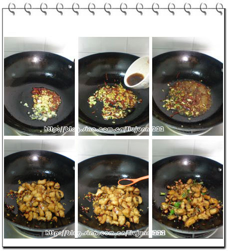 配料:油炸花生米2大匙;干辣椒、生姜、葱、香菜各适量;
