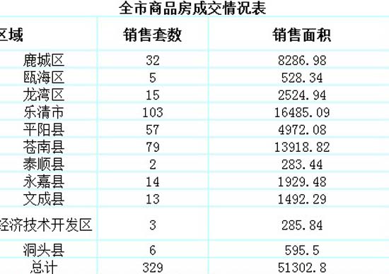 [小道] 1月楼市数据:温州全市卖房329套 乐清苍南占一半